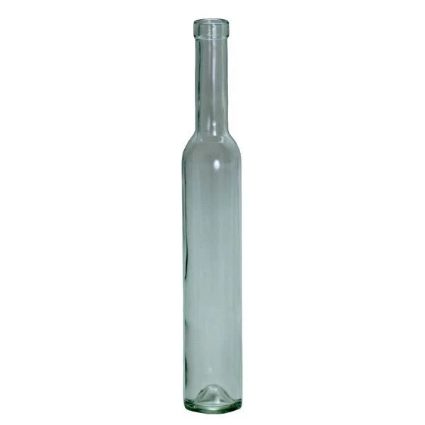 Elegant, tall clear glass bottles, perfect for icewines. Takes a #8 or #9 cork. 12 per case.