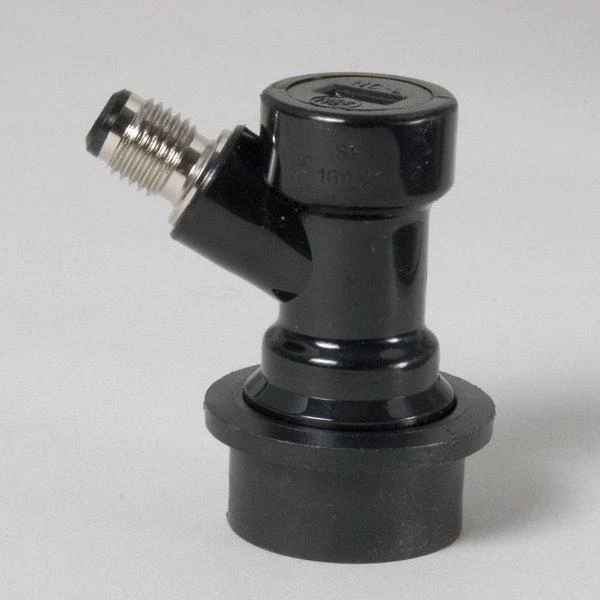 Liquid ball lock disconnect with 1/4″ MFL threaded fittings. Threaded MFL connection allows for easy disassembly of lines for cleaning. Connects to the liquid-out post on any home brew ball lock keg.