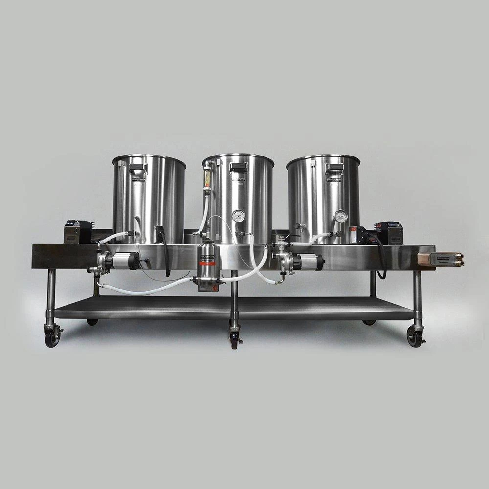 - 15 gallon configuration includes two 20 gallon kettles and a 30 gallon boil kettle