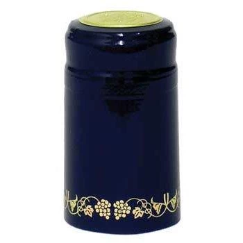 Blue with Gold Grapes PVC Foil Capsules give your wine bottles a clean, professional look. These capsules will shrink when you dip them in boiling water, hold them over the steam of a tea kettle, or blow on them with a hair dryer. Make sure to be careful when shrinking the capsules to the bottle.