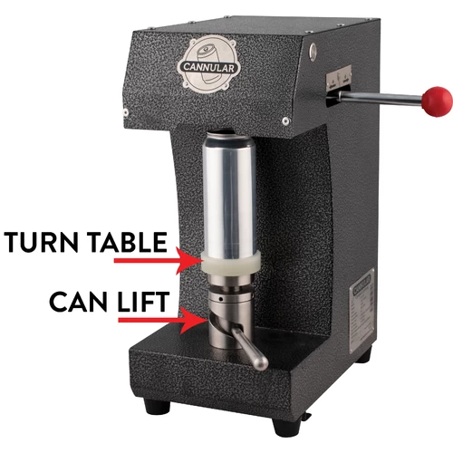 The Cannular’s table spacer is specifically designed to work with 500ml (16.9 oz) Can Fresh aluminum cans. 330ml (11.1 oz) Can Fresh cans are also available, but you will need the correct 330ml table spacer to use them with the seamer. We have tested standard 202 cans and have been able to achieve good seals with proper adjustments. It is necessary to adjust the table height to ensure you have the appropriate amount of pressure applied when the can lift is raised.