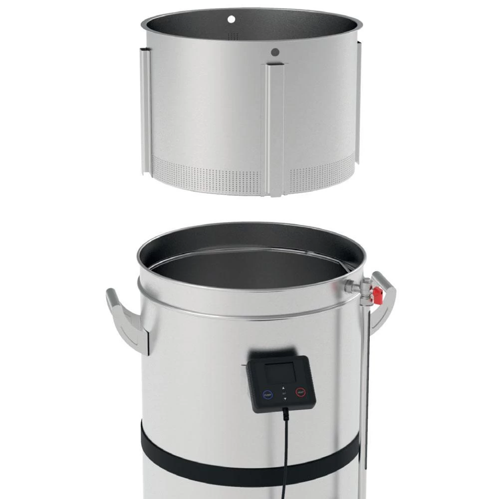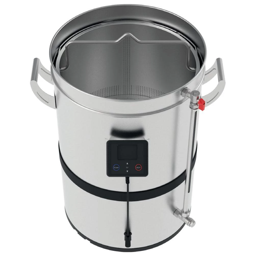 10 gallons (40L) too much? G40 is the 5-gallon (19L) brewers’ new best friend! Ideal for 5-gallon (19L) batches, with options of a traditional mash and sparge or no sparge. Think of no sparge like an awesome computer-controlled stainless steel BIAB system. The powerful 3300w heating element will ensure quick heating times and shorter brew days. Push the upper limits of high gravity brews with the increased grain basket size.