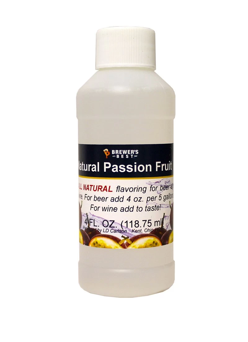 Natural Passion Fruit extract in a 4 oz vial – add at bottling or packaging. Use 1 to 4 oz per 5 gallons for beer, or to taste for wine.