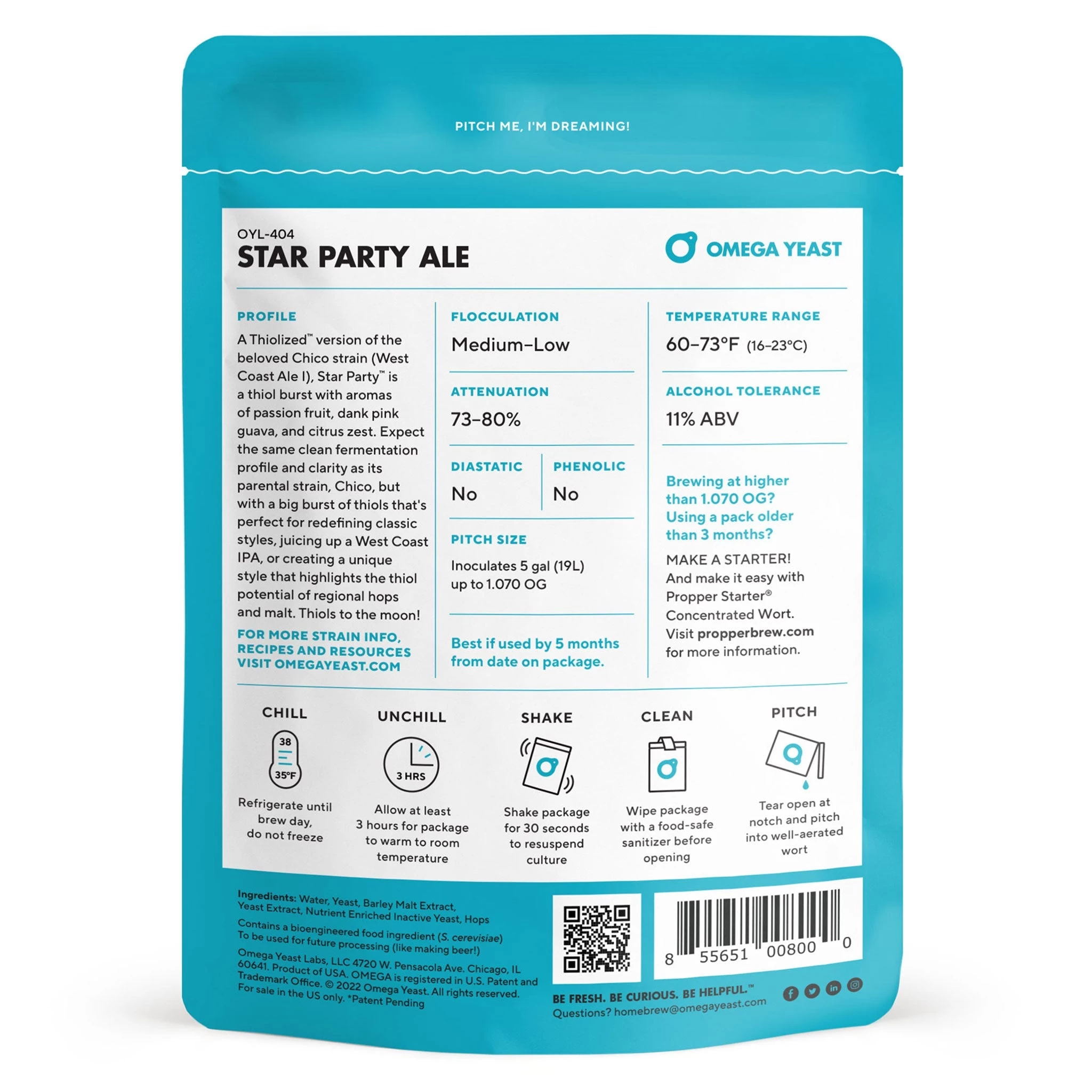Star Party Ale is the latest patent-pending strain in Omega’s Thiolized™ series. The Thiolized process enhances the ability of yeast to unlock thiol precursors bound within malt and hops to create the kind of tropical character associated with Southern Hemisphere hops. Star Party is designed to enhance thiol biotransformation while retaining the clean fermentation profile and clarity of its parental strain, West Coast Ale I (OYL-004). This latest Thiolized strain will add a big burst of thiols that’s perfect for redefining classic styles, juicing up a West Coast IPA, or creating a unique style that highlights the thiol potential of regional hops and malt. Learn more about biotransformation here.