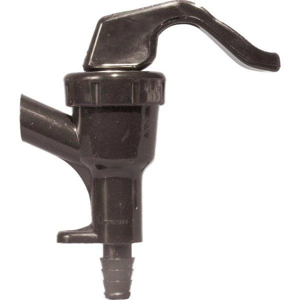 An economical and effective faucet head. Valve opens when squeezed. Simply attach the barbed end to our beverage tubing; no hose clamp is needed!