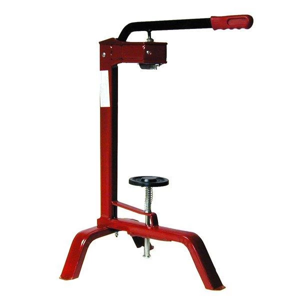 This high-quality corker has all of the important features of a floor corker at an affordable price: locking bottle platform, iris jaws (plastic), and adjustable plunger depth. Works with 750 ml or 1.5 liter wine bottles. The feet are drilled out so you can bolt it down for more leverage.