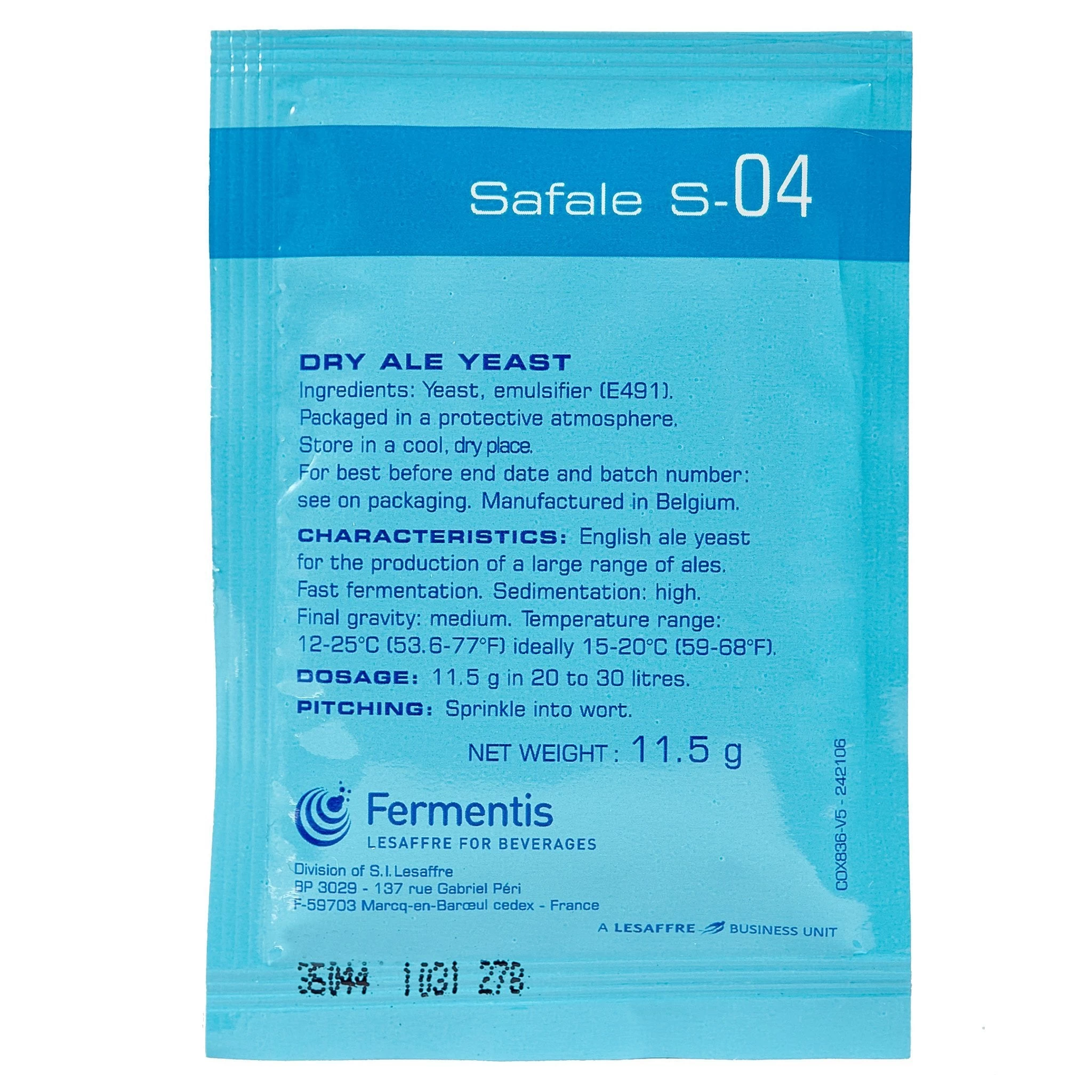 Safale S-04 English ale yeast has a fast fermentation and high flocculation rate. This ale yeast is recommended for a large variety of ale beers and it’s especially well adapted to cask-conditioned ales.